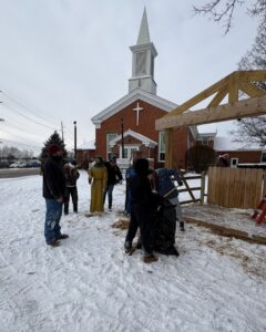Setup of the outdoor nativity scene at church (an annual event)